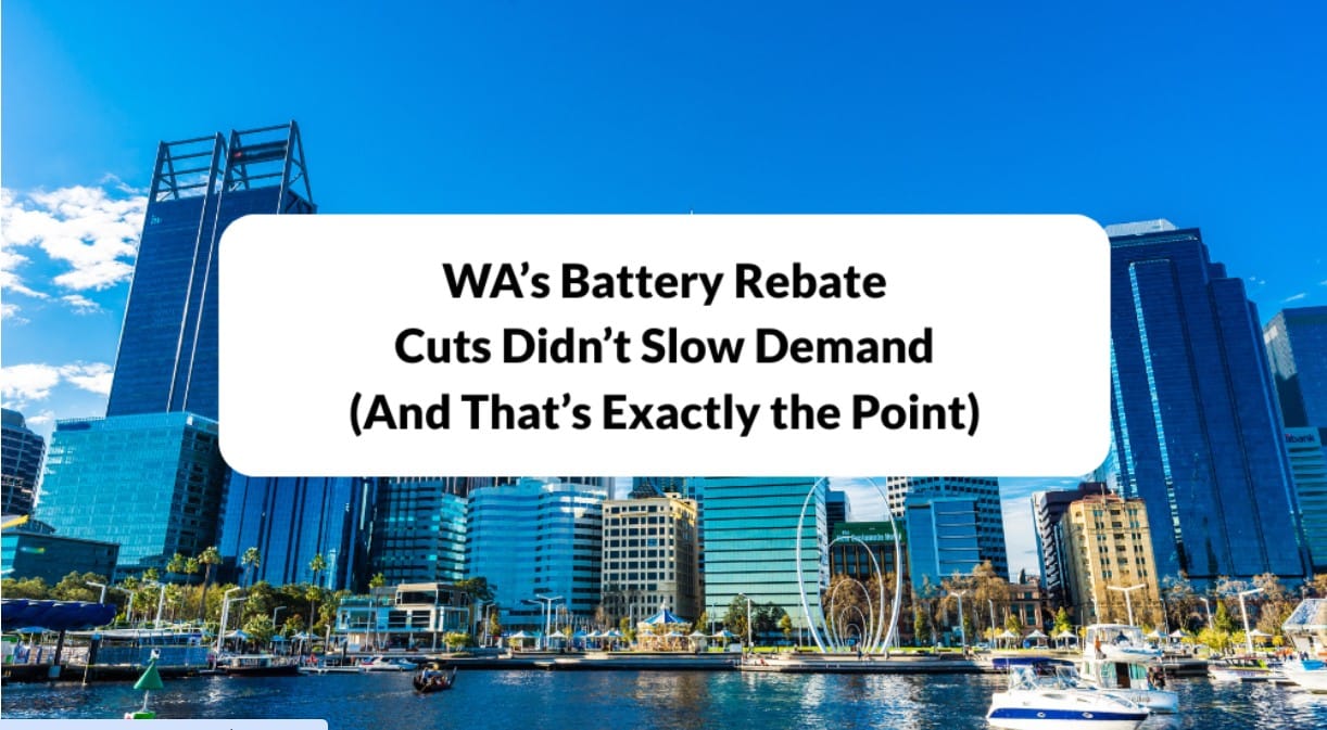 For context: battery installations in Australia went from 200 per day to 1,500 per day since the scheme launched last July. Booking calendars across the country are in a frenzy right now.